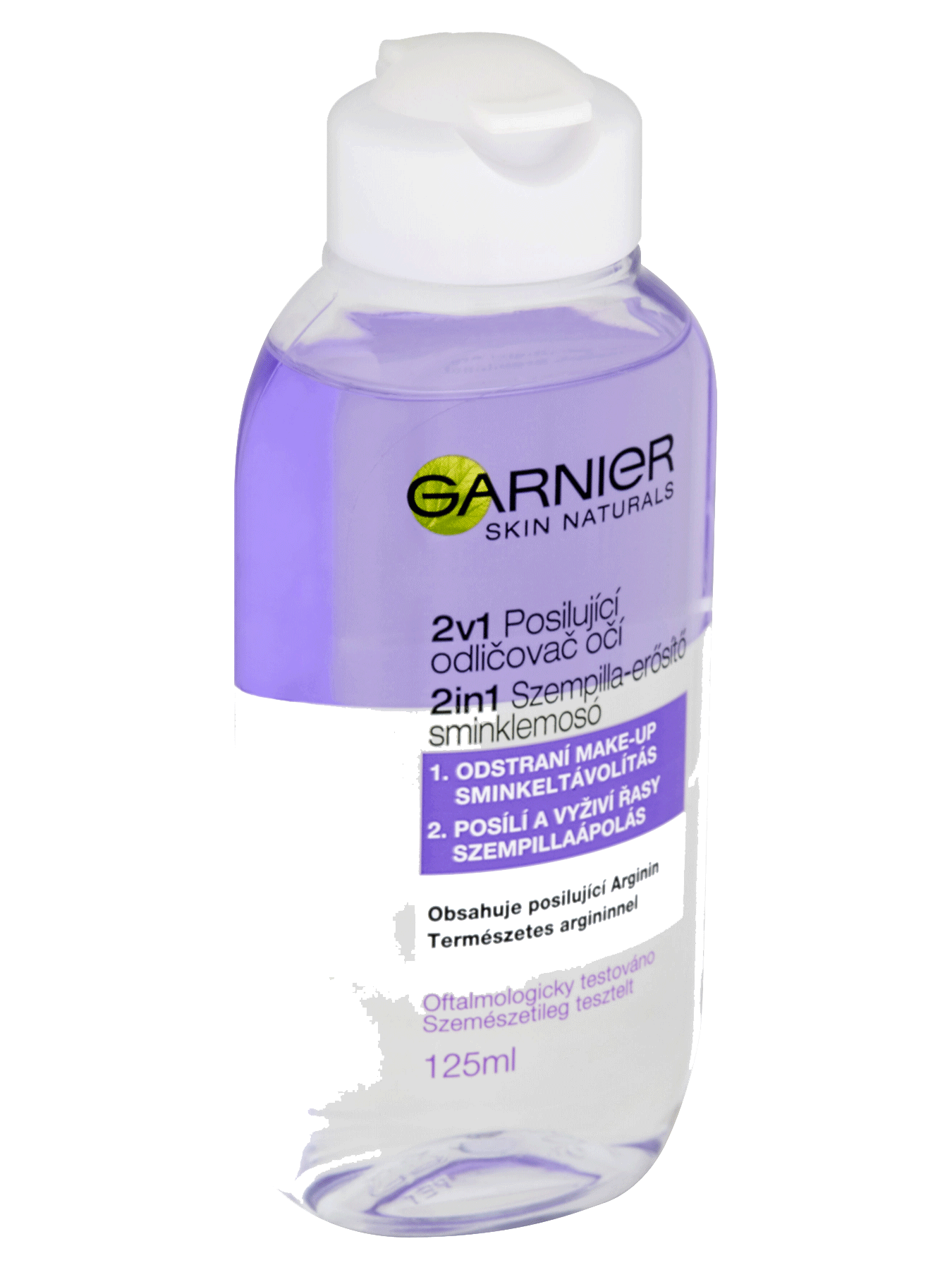 Posilňujúci odličovač očí 2v1 účinne odstraňuje make-up a zároveň posilňuje riasy. Odličovacia zložka jemne odstraňuje make-up, a to bez podráždenia očí. Posilňujúca zložka je obohatená o Arginín, ktorý dodáva silu riasam a zanecháva ich plnšie, hustejšie a pevnejšie. Oftalmologicky testované. Nezanecháva mastný film, šetrný k očiam aj k citlivej pokožke.